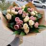 Нежные розы в крафтовой бумаге с атласной лентой, незаменимый подарок для любителей кустовых роз. Они отличаются от обычных роз тем что растут кустом, на каждой ветке до 5-7 бутонов.